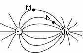 如图所示为点电荷a、b所形成电场的电场线分布图(箭头未标出),在M点处放置一个电荷量大小为q的负试探点电荷,受到的电场力大小为F,以下说法中正确的是( B )