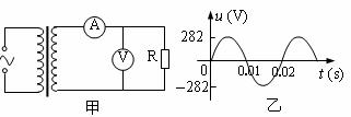 理想变压器连接电路如图甲所示,当输入电压波形如图乙时,电流表读数2A,已知原副线圈匝数比10∶1,则 ( D )