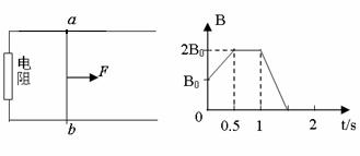 强度B随时间t如图变化时(规定垂直轨道平面向下为磁场方向为正),用一平行于导轨的力F向左或向右拉杆ab,使它保持静止。若规定由a→b方向通过杆的感应电流为正,向右的拉力为正,则能反映通过杆的感应电流I和拉力F随时间t变化的图线是 AC