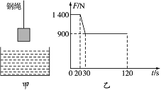 8.(2012·贵州安顺中考)某地在江面上修建一座大桥,如图中甲是使用吊车向江底投放长方形石料的示意图。在整个投放过程中,石料以恒定速度下降。图乙是钢绳的拉力F随时间t变化的图象(从开始投放到石料刚好接触湖底前)。t=0时刻吊车开始下放石料,忽略水的摩擦阻力。则下列说法错误的是( )。