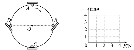 (2)设在A处时球拍对球的弹力为F,当球运动到B、D位置时,板与水平方向需有一定的夹角θ,请作出tanθ -F的关系图象。