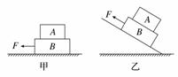 3. 物体A、B在外力F的作用下,在如图甲、乙两种情况下以相同的速率沿F的方向做匀速运动,若接触面间都不光滑.关于物体A、B的受力,下列说法正确的是( )