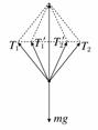 解析:对重物受力分析如图,当轻绳变长,两绳的夹角变小,可知,绳的张力变小,D项正确,C项错,两绳的合力始终与重力平衡,所以合力不变,A、B项均错.