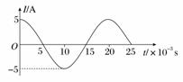 B. 交变电流的瞬时表达式为i=5cos50πt(A)