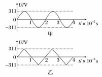 5. 如图甲、乙分别表示两种电压的波形,其中图甲所示电压按正弦规律变化.下列说法正确的是 ( )