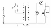 6. [2013·三亚模拟]如图所示,理想变压器初级线圈的匝数为n1,次级线圈的匝数为n2,初级线圈的两端a、b接正弦交流电源,电压表V的示数为220 V,负载电阻R=44 Ω,电流表A1的示数为0.20 A.下列判断中正确的是 ( )