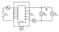 8. 如图所示,理想变压器原线圈中输入电压U1=3300 V,副线圈两端电压U2为220 V,输出端连有完全相同的两个灯泡L1和L2,绕过铁芯的导线所接的电压表V的示数U=2 V.则( )