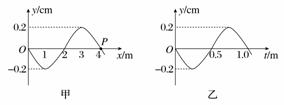解析:由图乙知,在t=0.5 s时P向上振动,再根据图甲,由前一质点带动后一质点运动的规律可得,该波沿+x方向传播,波速为v== m/s=4.0 m/s,选B.