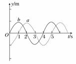 5. 一列简谐横波沿直线传播,已知介质中a、b两质点平衡位置间的距离为2 m,a、b两质点的振动情况如图所示,则下列说法中错误的是 ( )