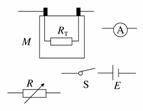 2. [2010·课标全国卷Ⅱ]如图所示,一热敏电阻RT放在控温容器M内;A为毫安表,量程6 mA,内阻为数十欧姆;E为直流电源,电动势约为3 V,内阻很小;R为电阻箱,最大阻值为999.9 Ω; S为开关.已知RT在95℃时的阻值为150 Ω,在20℃时的阻值约为550 Ω.现要求在降温过程中测量在95℃~20℃之间的多个温度下RT的阻值.