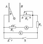 4. [2014·南京质检]A、B两块正对的金属板竖直放置,在金属板A的内侧表面系一绝缘细线,细线下端系一带电小球.两块金属板接在如图所示的电路中,电路中的R1为光敏电阻,R2为滑动变阻器,R3为定值电阻.当R2的滑动触头P在a端时闭合开关S,此时电流表A和电压表V的示数分别为I和U,带电小球静止时绝缘细线与金属板A的夹角为θ,电源电动势E和内阻r一定.则以下说法正确的是( )
