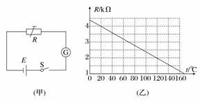5. [2014·武汉检测]温度传感器广泛应用于室内空调、电冰箱等家用电器中,它是利用热敏电阻的阻值随温度变化的特性工作的.如图(甲)所示,电源的电动势E=9.0 V,内电阻不计;G为灵敏电流计,内阻Rg保持不变;R为热敏电阻,其电阻值与温度的变化关系如图(乙)所示.闭合开关S,当R的温度等于20℃时,电流计示数I1=2 mA;当电流计的示数I2=3.6 mA时,热敏电阻的温度是________℃.