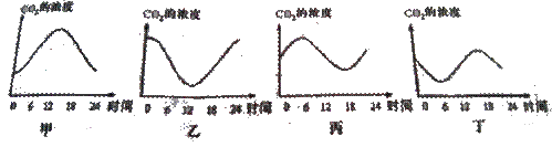 34.某生物小组的同学在玻璃温室内进行植物栽培实验,为此他们对室内空气中的二氧化碳进行24小时测定,下图曲线甲、乙、丙、丁能正确表示其测定结果的是