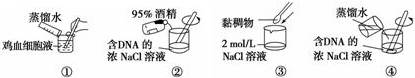 D.④是稀释NaCl溶液,使DNA的溶解度降低,从NaCl溶液中析出