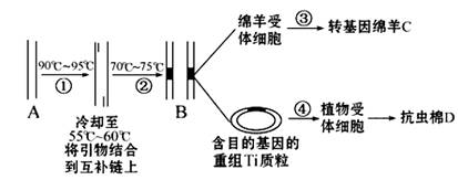 (3)为确定抗虫棉是否培育成功,既要用 作探针进行分子杂交测试,又要在个体水平上鉴定,后者具体过程是 。