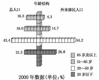 解析 读图可知,在外来移民人口中,占比例最高的是20~50岁的青壮年,其次是20岁以下的青少年,占比重最低的是65岁及以上的老年人口,所以外来移民可以缓解人口老龄化问题。