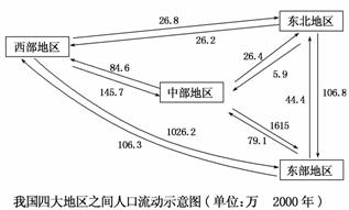 (2)从四大地区人口流向看,________地区和________地区向________地区的流动成为区际人口流动的主流,从流入区产业结构特点分析,其主要原因是