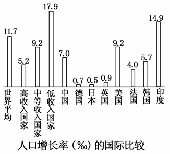 (3)中国与印度同为发展中国家,可中国的人口增长率不到印度的一半,请简述其原因,并说明人口增长与哪些因素有关。