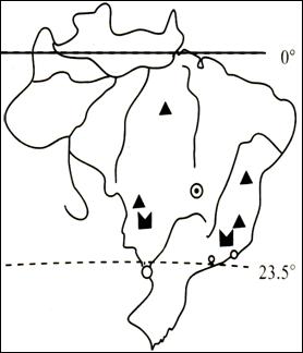 (2)设计图例,画出巴西的地形分布简图。(4分)