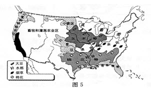 读美国农业带的分布图(图5),结合相关知识,回答10~11题。