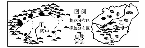 读“我国甲、乙两区域示意图”,回答1、2题。
