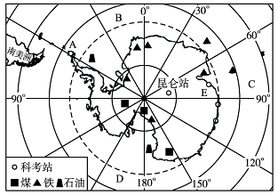(2)A点表示我国的南极科学考察站________站,E表示________站。E站在A站的________方向。