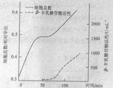 -半乳糖苷酶将乳糖分解为葡萄糖和半乳糖加以利用。将大肠杆菌培养在含葡萄糖和乳糖的培养基中,测定其细胞总数及细胞内