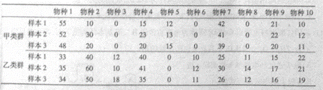 6.生物兴趣小组为了调查两个河口水域的水母类动物类群(甲、乙)的种类组成及其数量特征,使用浮游生物捕捞网(网口内径50cm,网身长145cm,网目孔径0.169mm)各随机取样3次,调查结果如表(单位:个)
