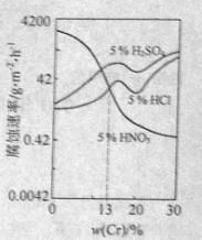 C. Cr含量大于13%时,因为三种酸中硫酸的氢离子浓度最大,所以对