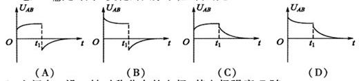 4.(江苏卷)如图所示的电路中,电源的电动势为E,内阻为r,电感L的电阻不计,电阻R的阻值大于灯泡D的阻值,在t=0时刻闭合开关S,经过一段时间后,在t=t1时刻断开S,下列表示A、B两点间电压UAB随时间t变化的图像中,正确的是