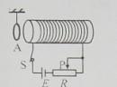 21.(上海物理)如图,金属环A用轻绳悬挂,与长直螺线管共轴,并位于其左侧,若变阻器滑片P向左移动,则金属环A将向_____(填“左”或“右”)运动,并有_____(填“收缩”或“扩张”)趋势。