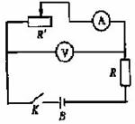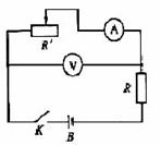 器材:量程3V的理想电压表V,量程0.5A的电流表A(具有一定内阻),固定电阻R=4Ω,滑线变阻器R′,电键K,导线若干。