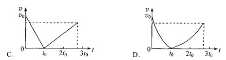 ,一初速度为v0的小物块沿斜面ab向上运动,经时间t0后到达顶点b时,速度刚好为零;然后让小物块立即从静止开始沿斜面bc下滑.在小物块从a运动到c的过程中,可能正确描述其速度大小v与时间t的关系的图像是( )