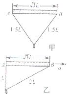 (2)若杆与环保持相对静止,在空中沿AB方向水平向右做匀加速直线运动,此时环恰好悬于A端的正下方,如图乙所示。