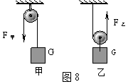如图8所示,图 中的滑轮是定滑轮;图甲中滑轮的作用是