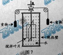 广东卷图7为焦耳实验装置图,用绝热性能良好的材料将容器包好,重物下落带动叶片搅拌容器里的水,引起水温升高。关于这个实验,下列说法正确的是(AC)