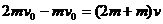 (2)外壳和内芯,碰撞过程瞬间动量守恒,有4mV1=(4mg+m)V2,