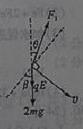 (3)平板足够大,如果将平板放置到无限远根据题意也能相碰,此时小球C必须匀速或加速不能减速,所以满足条件的恒力在竖直线与C的速度线之间,设恒力与竖直方向的夹角为β,则 0≤β<120°