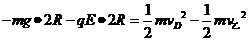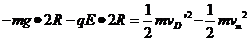 得a=3g,根据牛顿第二定律电场力是重力的4倍为4mg,根据动量定理△P=mgt-3mgt=-2mgt,B正确;电势能变化量为4mg×gt2=2mg2t2,A错误;小球减速到最低点和最初加速时的动能变化量大小相等为