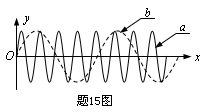 [解析]同一音叉发出的声波,声源相同,频率f相同、周期T相同(CD均错);又声波在水中传播的传播速度比在空气中快、速度v大,根据波长λ=vT可知声波在水中波长较大;由题15图波形曲线可知b比a的波长长,b是水中声波的波形曲线,A对、B错。