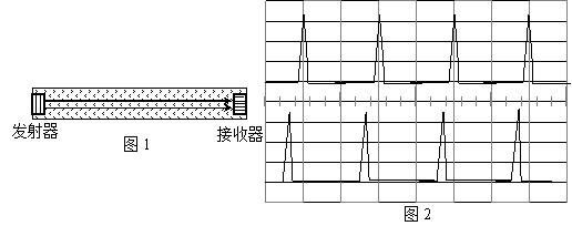 对比图2中上、下两列波形,可知信号在液体中从发射器传播只接受器所用的时间为