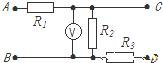 12、如图所示的电路,将AB两端接入10V电源,电压表示数为3V,拆去AB两端电源,再将CD两端接入10V电源,电压表示数为7V,则R1:R3的值为( )