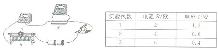 (2)上表是他的实验记录,分析表中数据可知,他在实验时,将电阻R两端的电压控制在 伏。