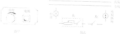 甲是某宾馆床头柜上的开关示意图,图乙是其控制的电路,其中S1为旋钮开关,单独控制台灯的通断和亮度;S2为单独控制电视插座的开关.请在图乙中将电路图连接完整,要求符合安全用电原则.![]()