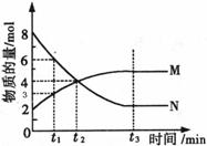 在一定温度下,容器内某一反应中两种气体M、N的物质的量随反应时间变化的曲线如图,下列表述中正确的是