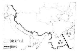 23. 在我国,南支暖湿气流与北方南下冷空气势均力敌,相持不下,从而在昆明与贵阳之间形成