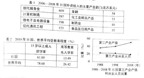 (二)在经济全球化背景下,H国IT产业迅速发展,但该国的基本国情也使得以IT产业为主导的现代服务业面临挑战,读图表,回答问题。