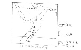 (四)读7月索马里洋流示意图,回答下列问题。(16分)