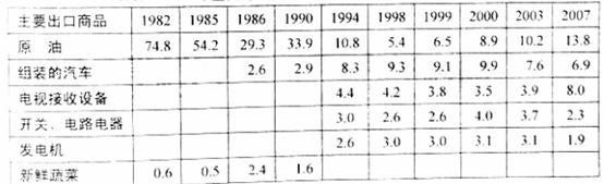 1982-2007年墨西哥主要商品占商品总出口的比重(%)