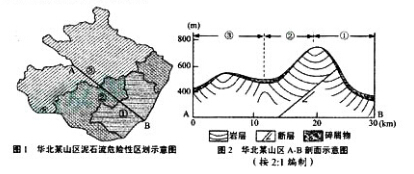 一批地理工作者对我国华北某省山区进行泥石流危险性评估,划定了该区泥石流的高危区、中危区和低危区分布范围。